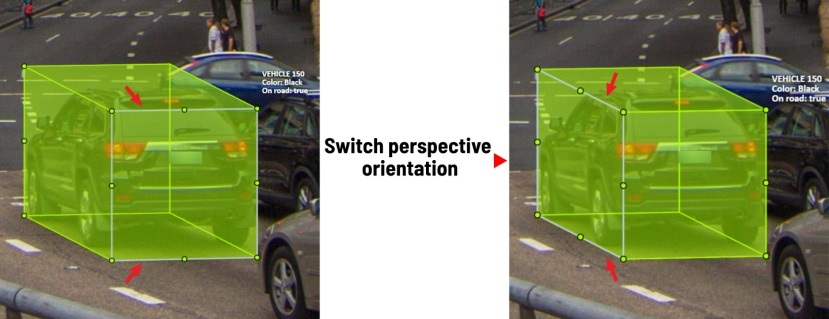 You can do it by right clicking on the cuboid and selecting Switch perspective orientation.