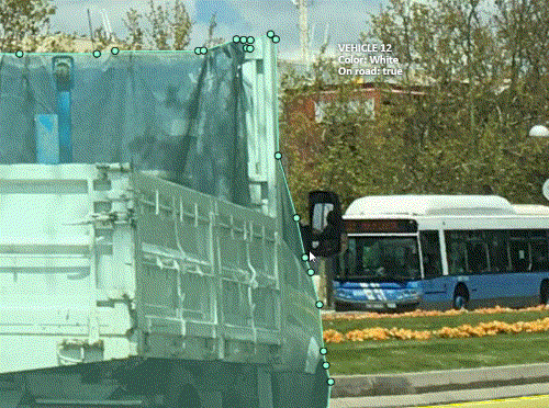 Intelligent polygon croppingoption is activated in the settings, СVAT considers two criteria to decide which part of a polygon should be cut off during automatic editing.- The first criteria is a number of cut points.