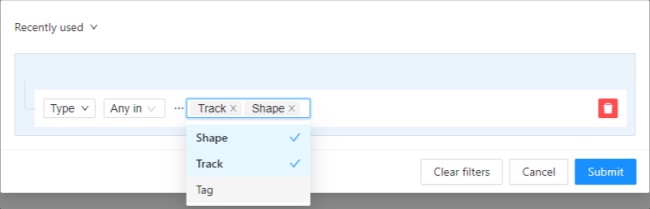 Once applied filter automatically appears in Recent used list. Maximum length of the list is 10.