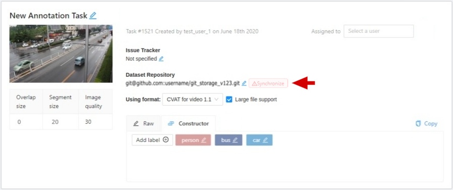 If annotation in the task does not correspond annotations in the repository, the sync button will turn red: