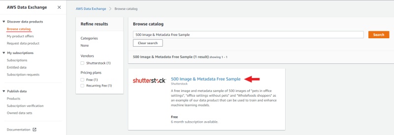 For example, consider adding a set of datasets 500 Image & Metadata Free Sample.