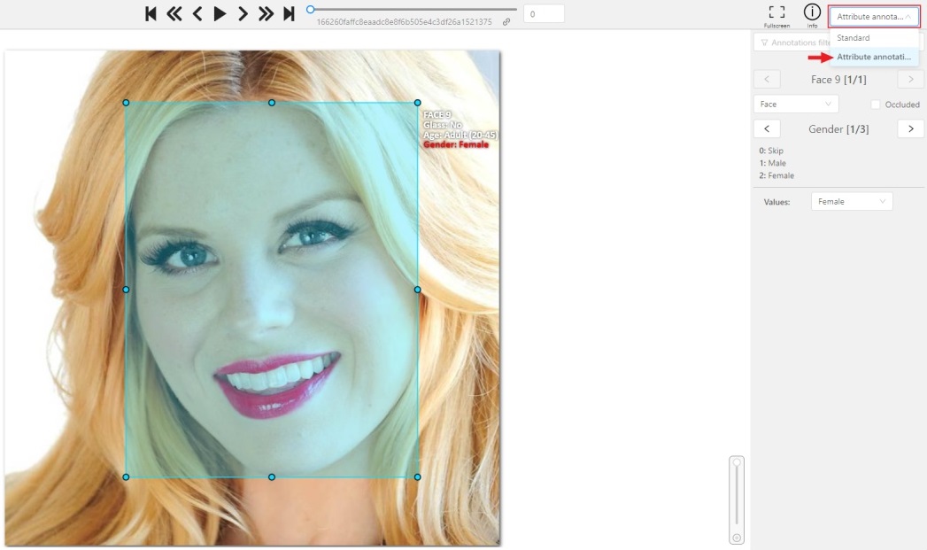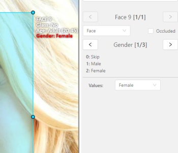 gender. Look at the bottom side panel to see all possible shortcuts for changing the attribute. Press key2on your keyboard to assign a value (female) for the attribute or select from the drop-down list.
