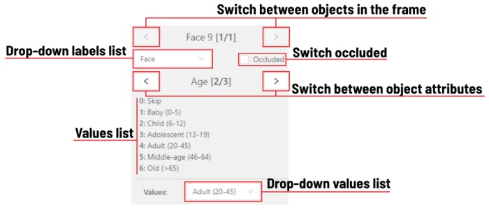 In this mode you can edit attributes with fast navigation between objects and frames using a keyboard. Open the drop-down list in the top panel and select Attribute annotation Mode.