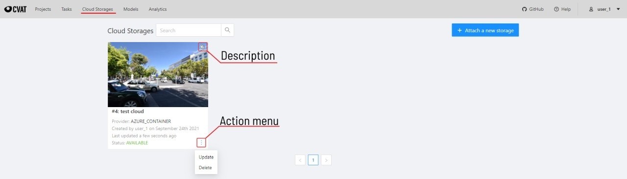 The cloud storages page contains elements, each of them relating to a separate cloud storage.