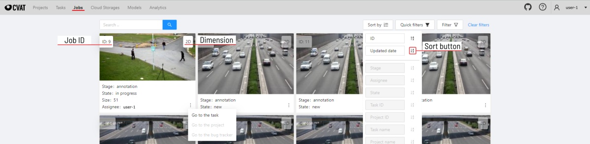 On the jobs page, users (for example, with the worker role) can see the jobs that are assigned to them without having access to the task page, as well as track progress, sort and apply filters to the job list.