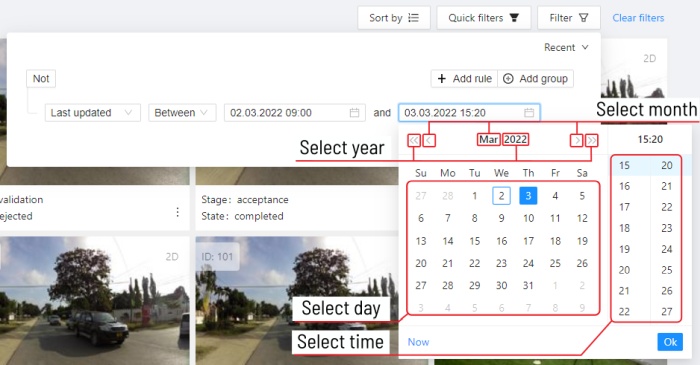 last modified date and time (or value range) | The date can be entered in the dd.MM.yyyy HH:mm format or by selecting the date in the window that appears when you click on the input field |