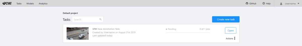 Export task dataset— download annotations or annotations and images in a specific format. More information is available in the export/import datasets section.Upload annotationupload annotations in a specific format. More information is available in the export/import datasets section.Automatic Annotation— automatic annotation with OpenVINO toolkit. Presence depends on how you build the CVAT instance.Backup task— make a backup of this task into a zip archive. Read more in the backup section.Move to project— Moving a task to a project (can be used to move a task from one project to another). Note that attributes reset during the moving process. In case of label mismatch, you can create or delete necessary labels in the project/task. Some task labels can be matched with the target project labels.Delete— delete task.
