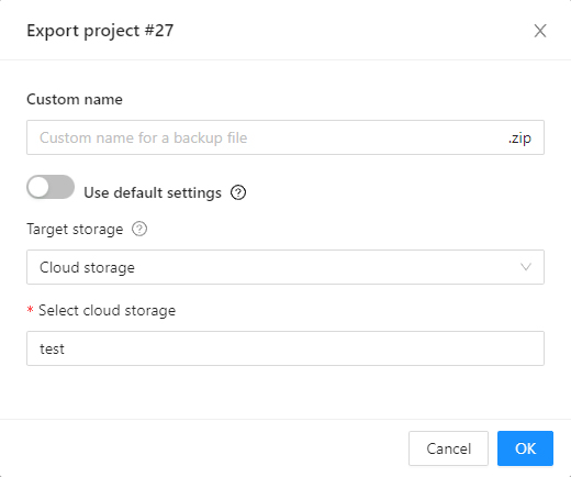 You can backup a project or a task locally on your PC or using an attached cloud storage.