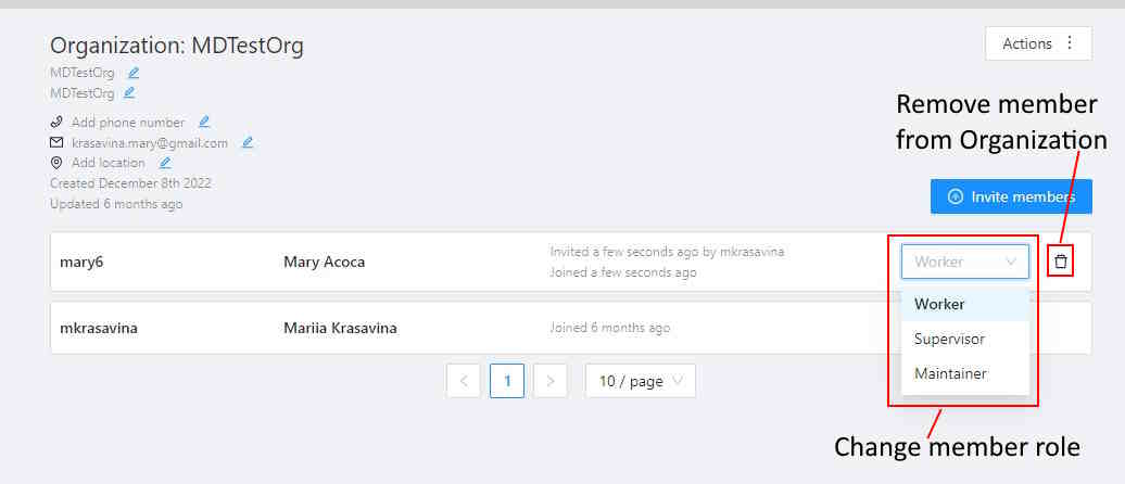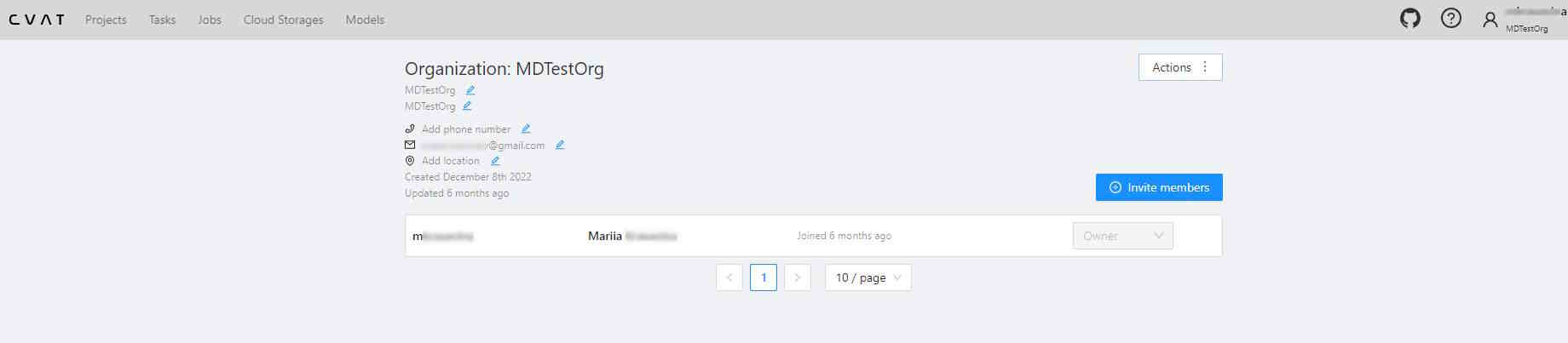 Organization page is a place, where you can edit the Organization information and manage Organization members.