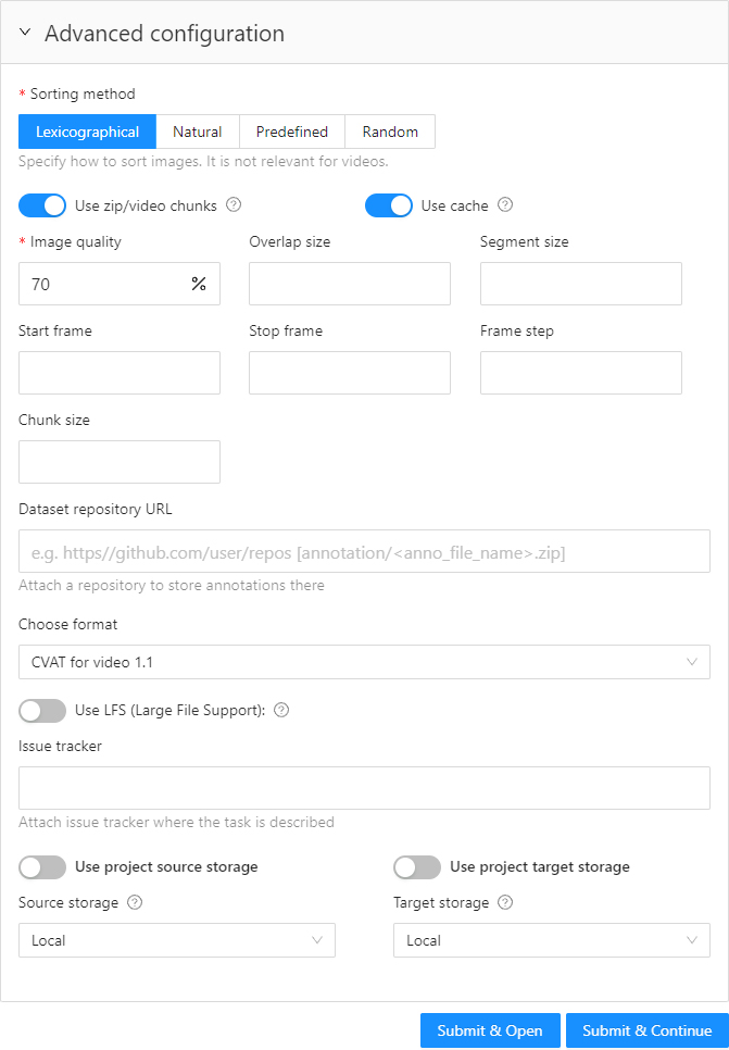 To start annotating in CVAT, you need to create an annotation task and specify its parameters.